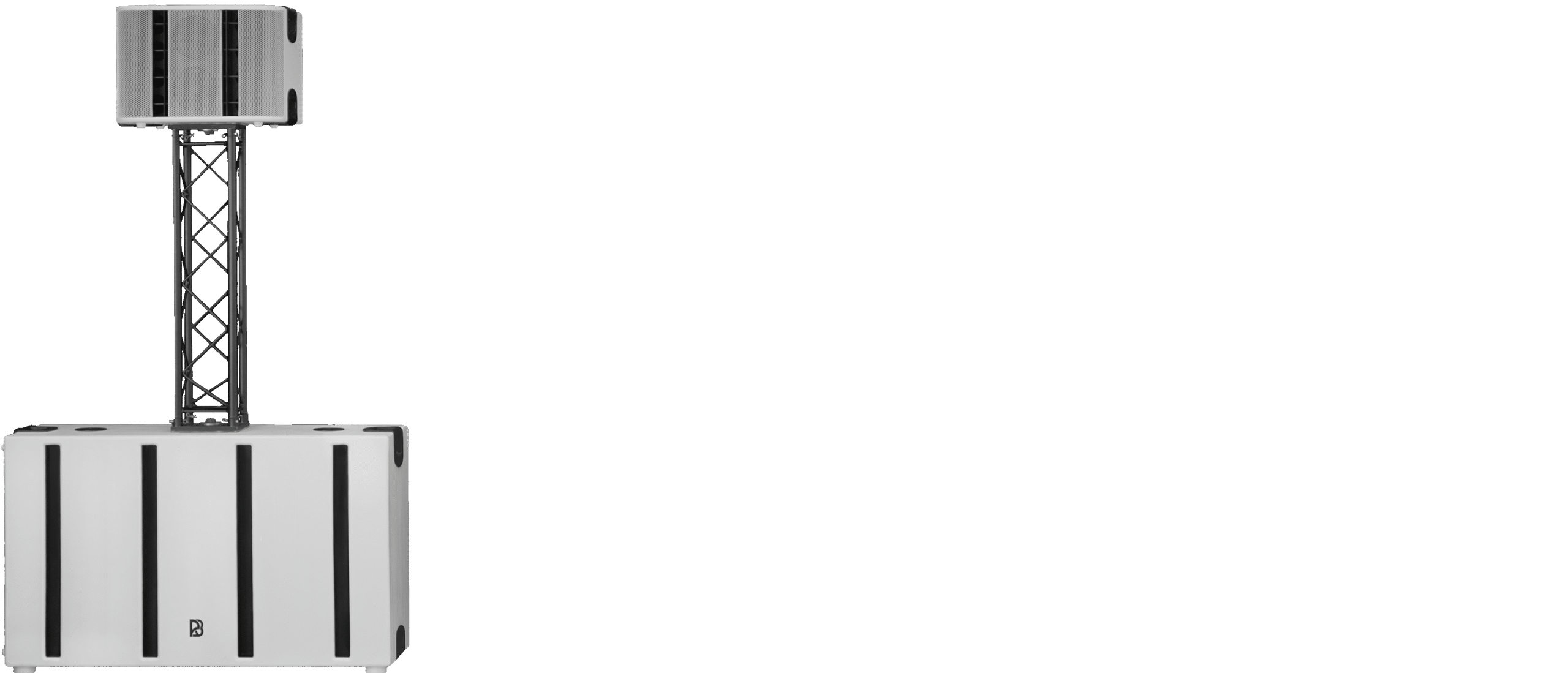 Weiße Gehäuse und Form-Follows-Function-Ansatz für eine neue Ästhetik in der Beschallung.